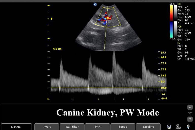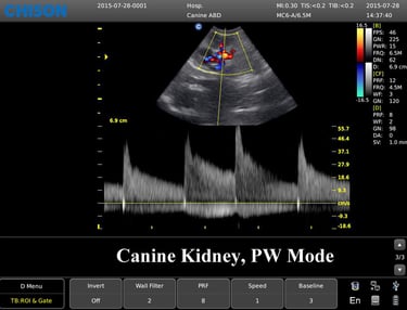SRA (Speckle Reduction Algorithm): Elimina el ruido y el grano de la imagen sin perder el detalle de los bordes. Esto es vital para identificar pequeñas lesiones en órganos como el bazo o el hígado canino.