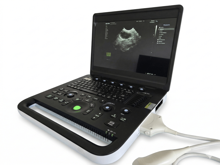 Modos de Imagen Versátiles: Soporta B, B/B, 4B, B+M, M y PW (Doppler Pulsado), permitiendo realizar evaluaciones de flujo sanguíneo básicas.